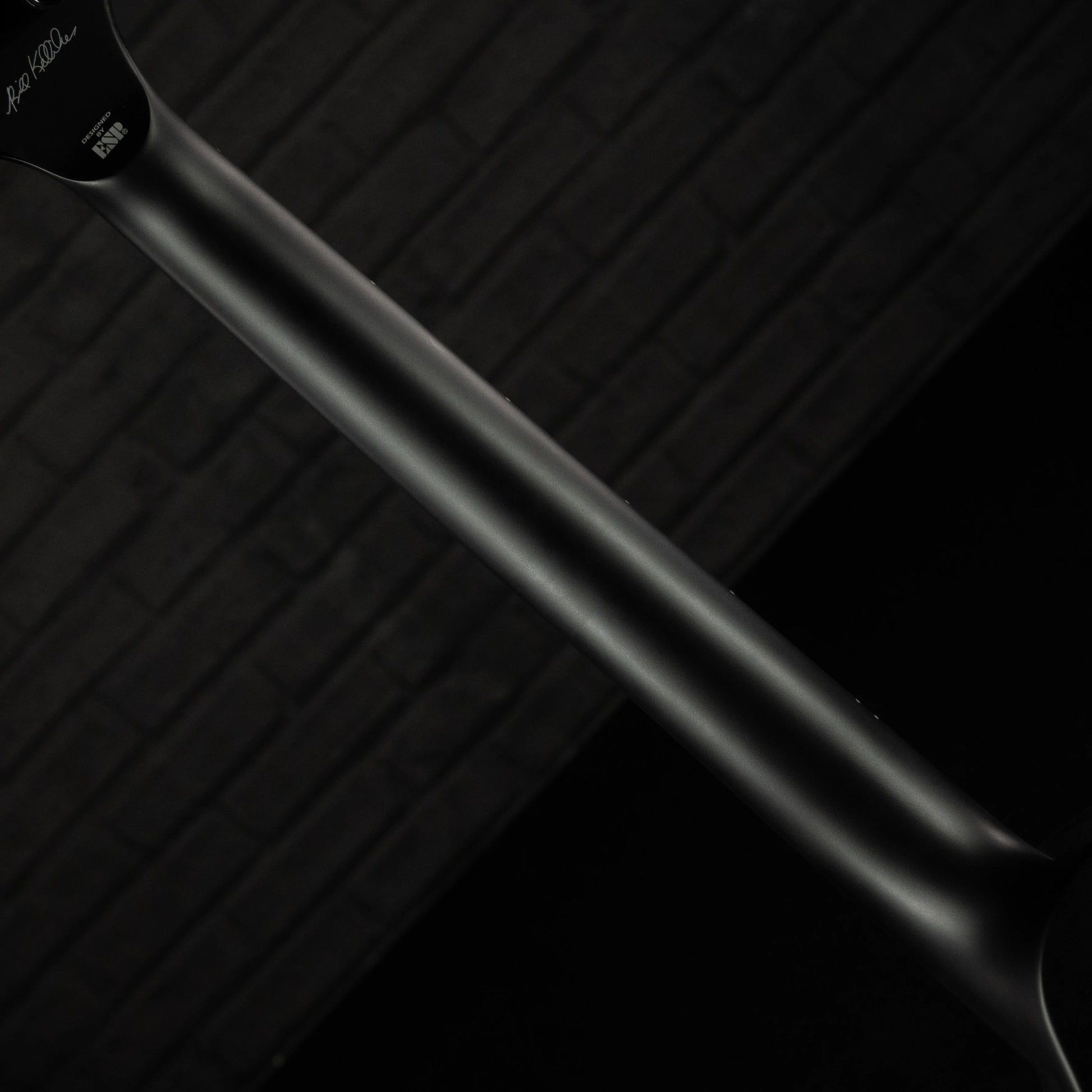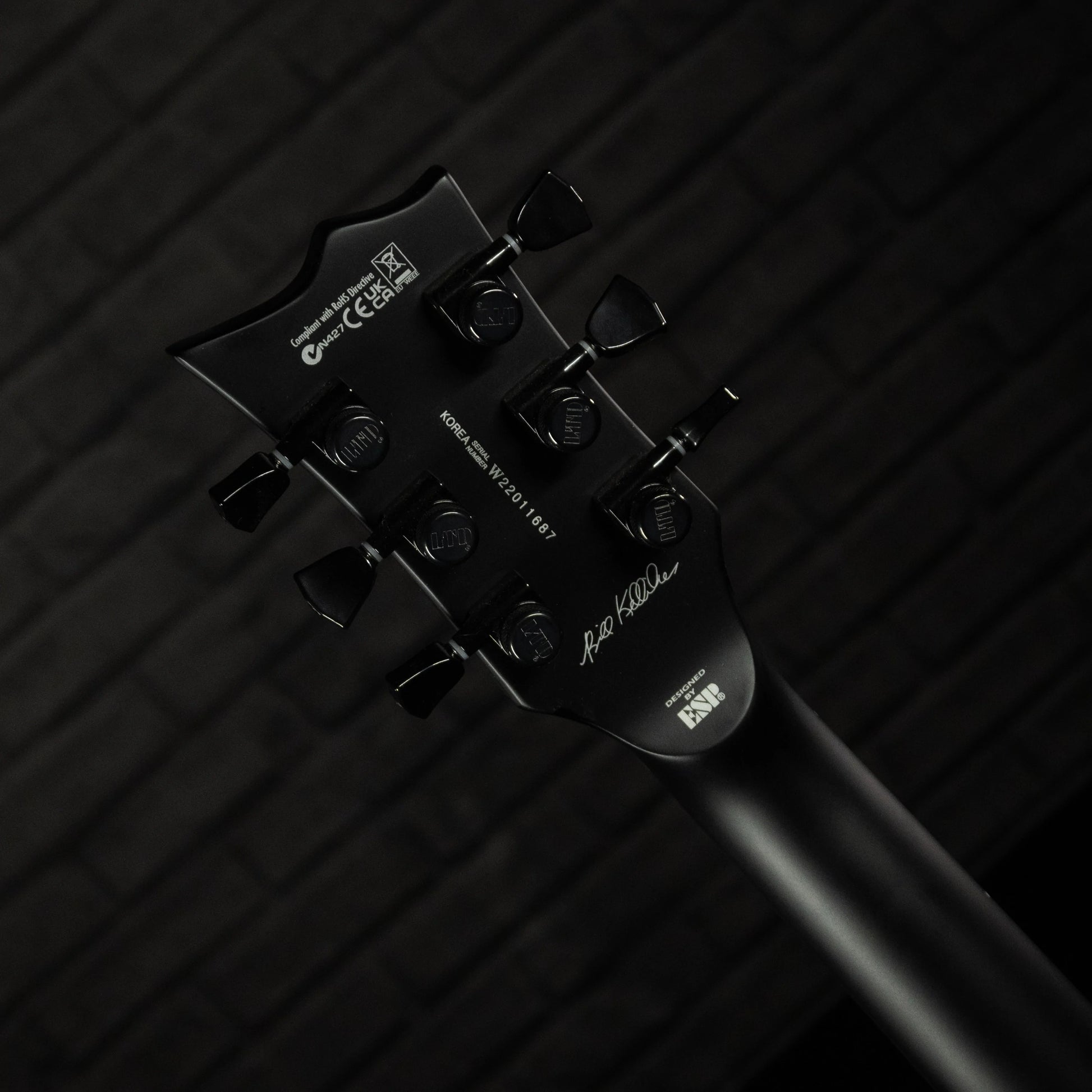 The BK-600 is one of the LTD Signature Series guitars for Bill Kelliher, guitarist for award-winning American metal band Mastodon. Designed by Bill to provide the wide range of tones needed for Mastodon’s music while being sturdy and reliable enough for his most punishing rhythms and brutal riffs throughout long tours, the BK-600 is based on the single-cutaway ESP Eclipse guitar style, along with a traditional full body thickness and no waist cut. Its three-piece mahogany neck is joined to the body with set-thru construction at 24.75” scale for smooth and comfortable fast access to the upper frets. The BK-600 offers an ebony fingerboard with pearloid “ESP Flag” inlays and 22 frets, as well as binding on the body, neck, and headstock. Its sound is generated with a set of customized Seymour Duncan Distortion pickups, the original high output humbucker with a massive ceramic magnet and hot coil windings to deliver full-bodied rock and metal tones that are controlled with master volume and tone knobs that each offer a push-pull control to split the bridge and neck pickups respectively. Other professional features on the LTD BK-600 include locking tuners and a TonePros locking bridge and tailpiece. It’s available in a distinctively cool Military Green Sunburst Satin finish.
