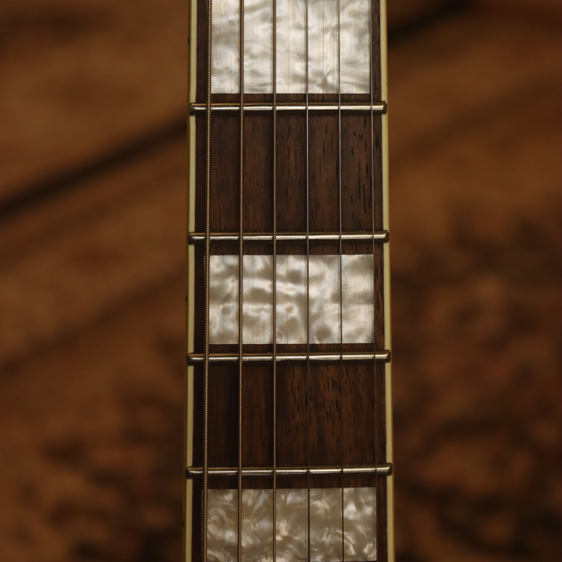 - 12"-radius laurel fingerboard with pearloid Neo Classic™ thumbnail inlays and 22 medium jumbo frets
