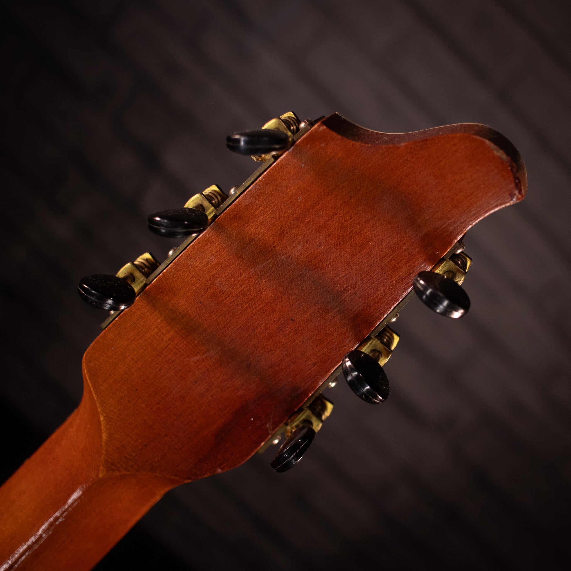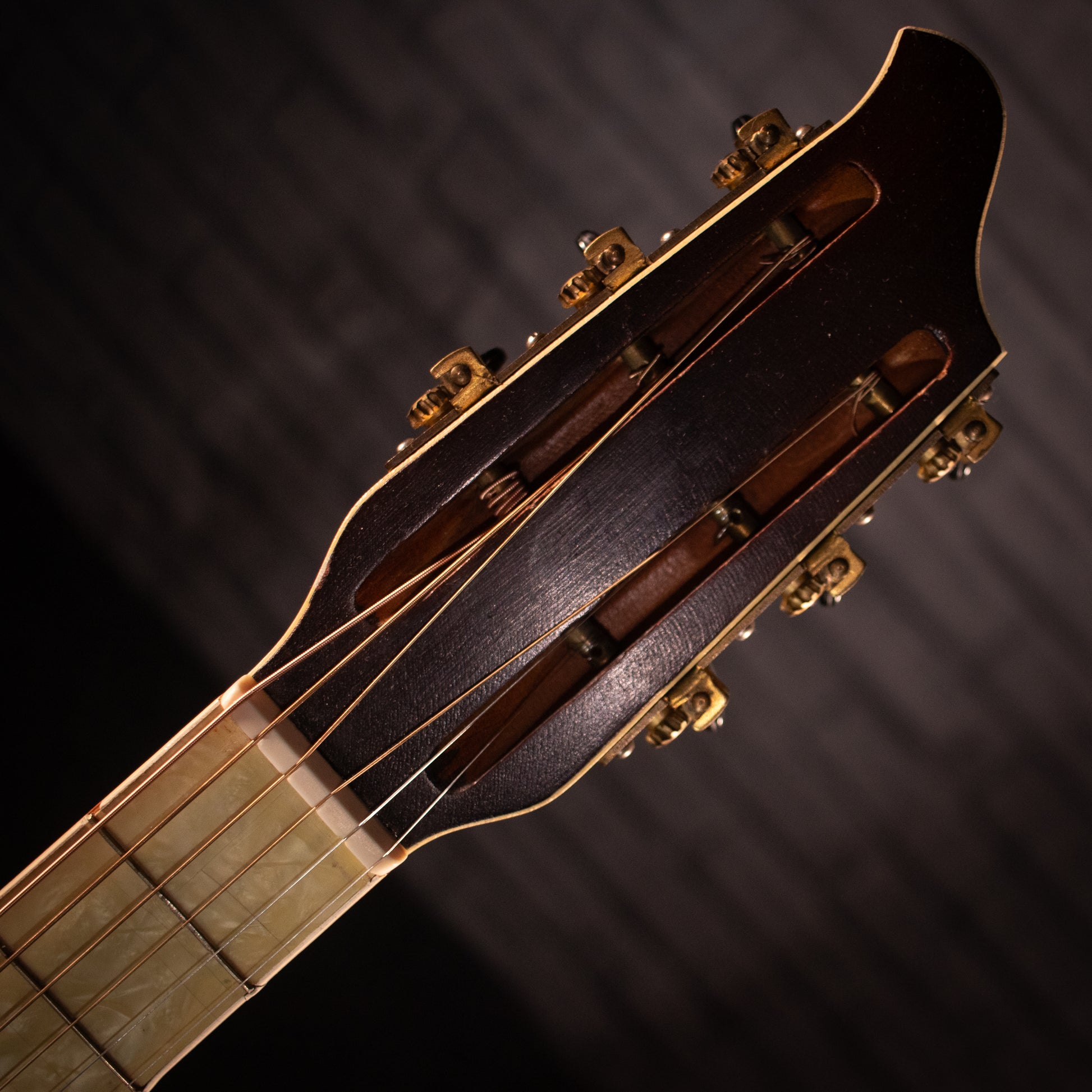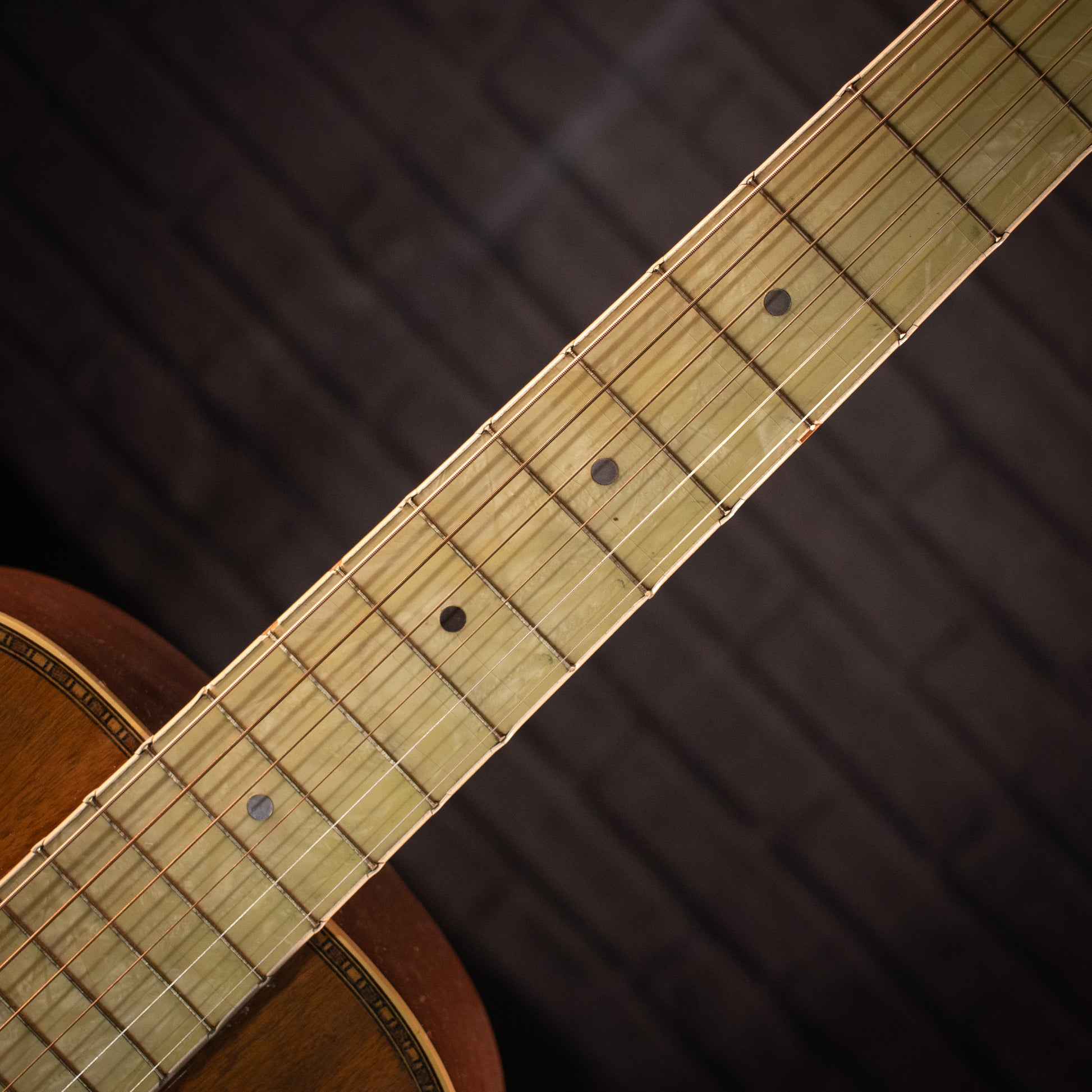 Stromberg-Voisinet was one of numerous companies that built fretted instruments in Chicago in the early part of the 20th century. Like Regal, Harmony and most of their other competitors, Stromberg-Voisinet made relatively inexpensive instruments that were designed to be sold through catalogs. 1920s Stromberg-Voisinet instruments were very well made, given their cheap prices, and they generally had a unique approach to design. Today’s Catch was made sometime in the mid-1920s, at the height of America’s infatuation with all things Hawaiian.